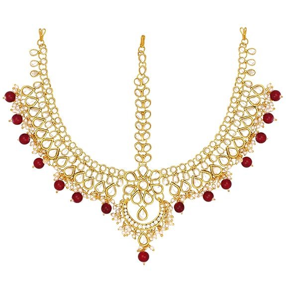 Gold Plated Dulhan Choker Bridal Set with sheeshpatti