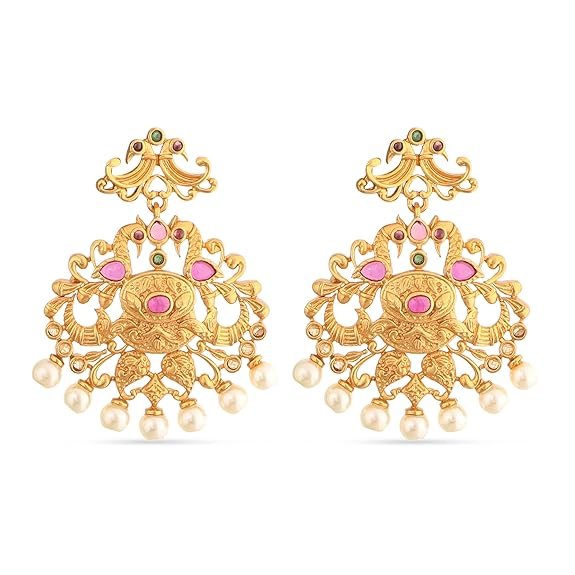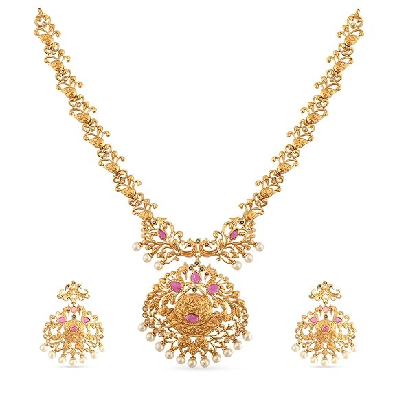 Antique Gold Plated Saroja Short Necklace Set with Peacock Design