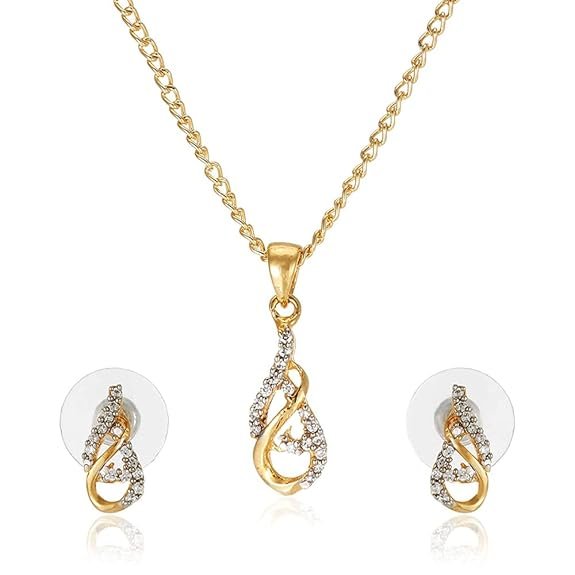 24kt Gold Plated Elegant Style Pendant and Matching Earring with Austrian Crystals
